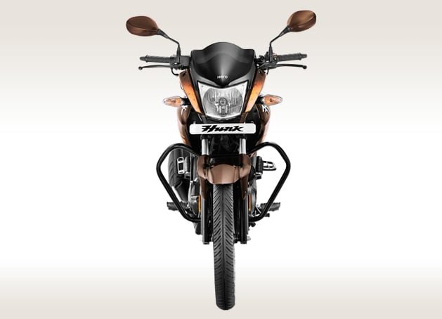 The 2015 Hero Hunk Facelift gets the Hero Xtremeย Sports‘ 149.2cc motor with a power output of 15.6 bhp @ 8500 rpm and peak torque of 13.50 Nm @ 7000 rpm. The front shock absorbers are now upside down gas shocks and come finished in black and silver unlike the current model’s golden and silver. The rear gets inverted GRS suspension.