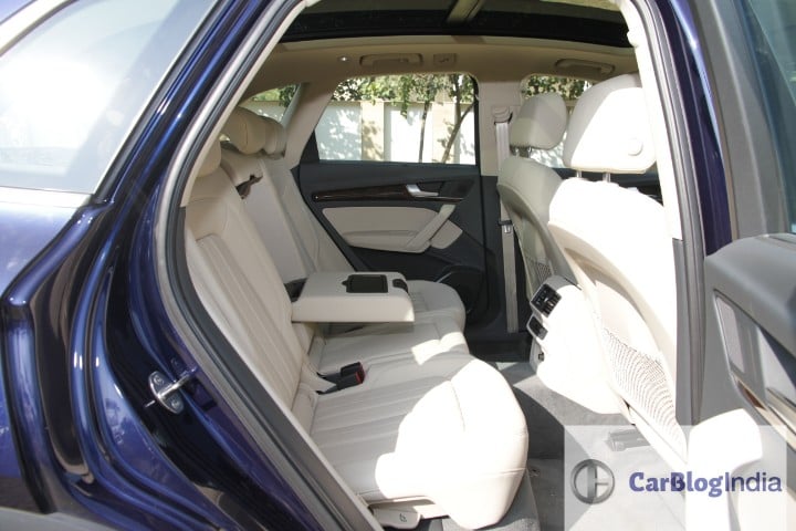 If the 2018 Audi Q5 excels in any area, this is it. Start the car and it almost feels like an electric with zero noise from the engine compartment creeping into the cabin. Driving the Q5 at speeds excess of 100kph does make a little tyre noise but you end up noticing it only because the car otherwise is super quiet. The acoustic windscreen helps in keeping the wind noise out and improves the central subwoofer performance. Headroom in both rows is adequate and the rear can fit three adults side by side. The middle person does have to adjust as there’s quite a hump in the floor. The rear door doesn’t open full 90 degrees and this does hamper the accessibility factor. The rear seats do offer versatile options and the 40:20:40 seat layout can be individually folded, reclined or slide forward/backwards.