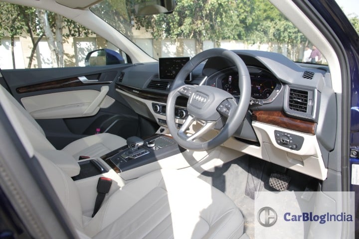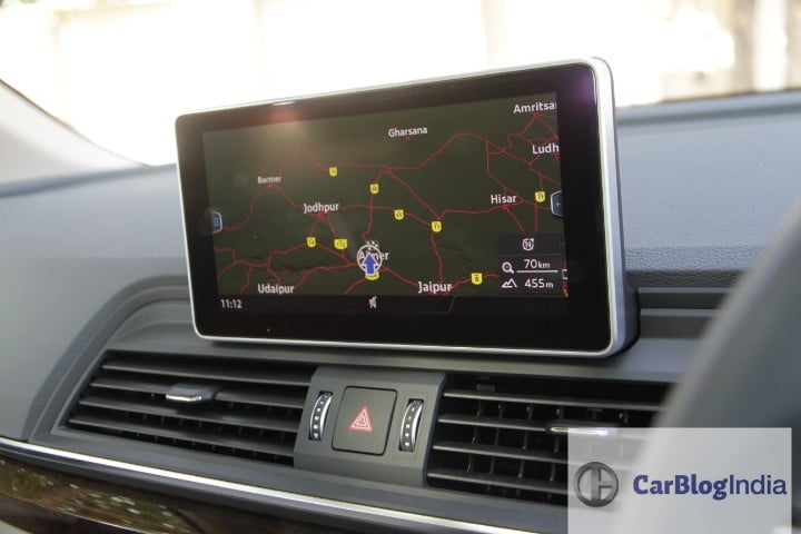 The first and foremost feature that definitely stands out is the Audi Virtual Cockpit which features a high-resolution display in place of the instrument cluster. The display is customisable and offers literally all the data one can ask for and then some. The MMI screen is an 8.3-inch display sitting on the dashboard and is controlled using the touchpad as well as the joystick. The MMI touch offers 8 different buttons for your favourite commands as shortcuts and you can simply engage with a mere push of a button. Furthermore, the MMI offers direct connectivity to both Apple as well as Android smartphones. The Audi Phone Box offers storage space for your smartphone and charges it wirelessly. This also doubles up as a signal booster as the Q5’s antenna doubles up as a phone signal booster as well. The Audi Sound System offers 10 speakers with a total output of 180 watts and it does sound good.