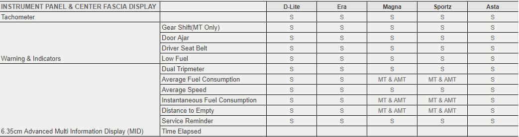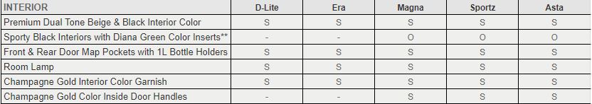Here is the detailed variant wise features list: