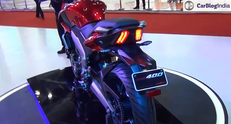 Unlike the Pulsar CS400 concept, this bike misses out on upside down front forks. Braking duties are courtesy of disc brakes at both ends. The bike also gets 17-inch alloy, ABS and gas-charged monoshock.