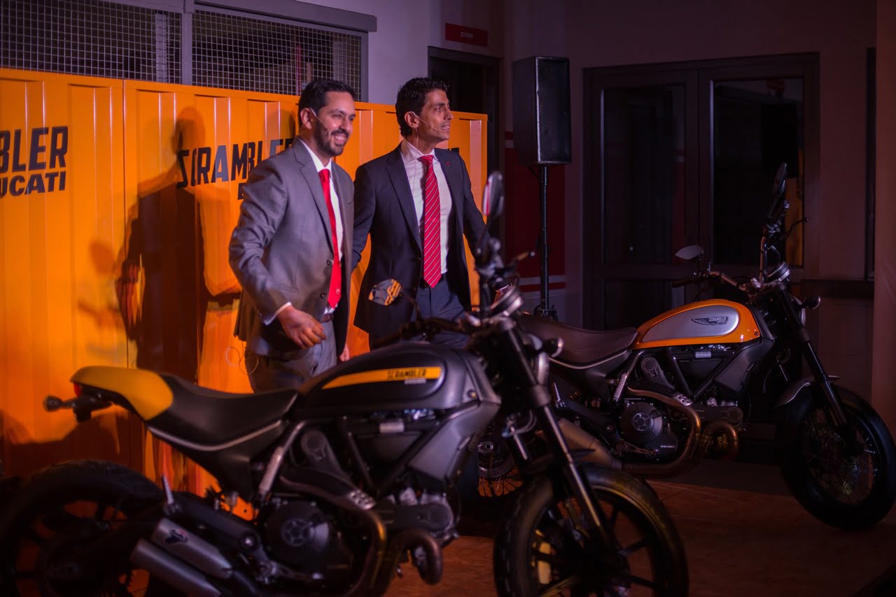 During a press conference, Mr. Pierfrancesco Scalzo (Ducati Asia General Manager – Sales and Marketing) spoke about the brand’s history, its Italian heritage and current range, while Mr. Ravi Avalur (Ducati India Pvt. Ltd Managing Director) presented plans for India’s network, confirmed the opening of a new dealership in UB City, Bangalore in October 2015 and unveiled the the two new Scrambler variants.