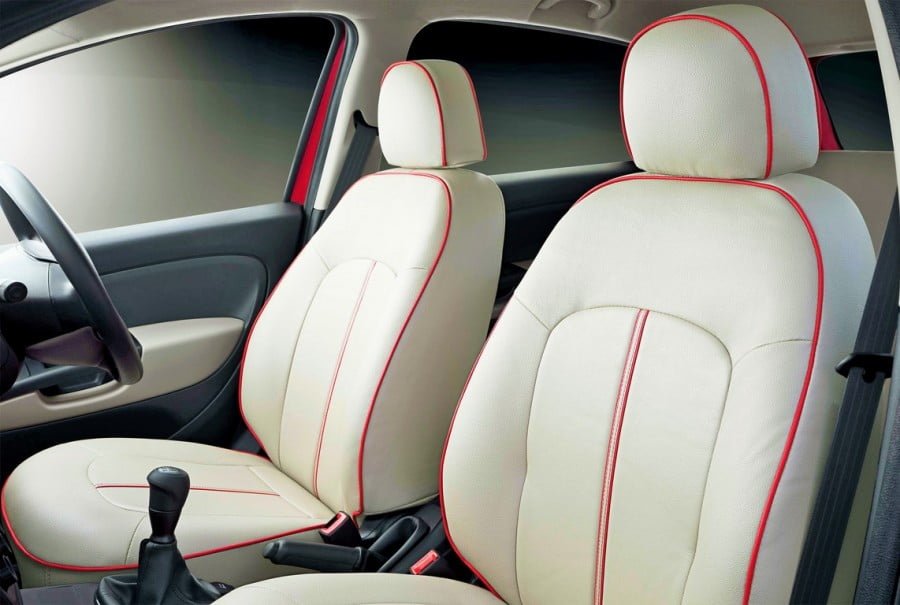 - New white seat covers with red piping
