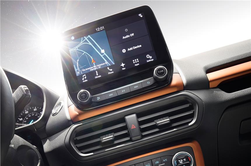 A highlight of the EcoSport’s features list will be the dash-mounted eight-inch screen for theย Sync 3 system. The EcoSport will offer Android Auto and Apple CarPlay, along with an optional Harman-sourced 10-speaker, 675-watt B&O PLAY audio system.