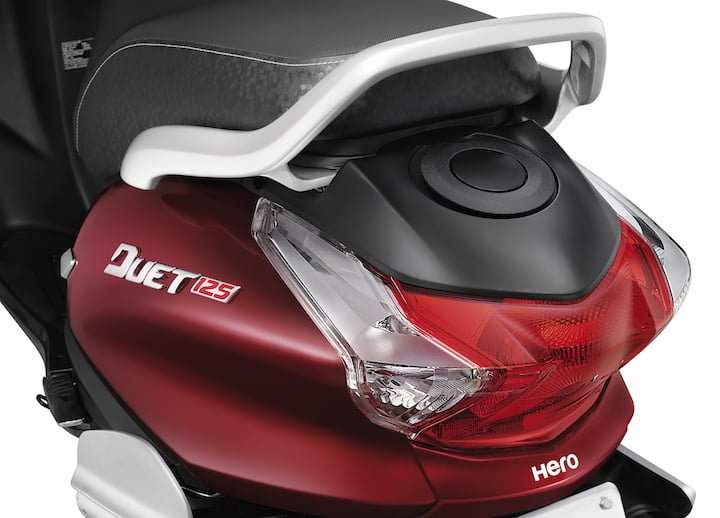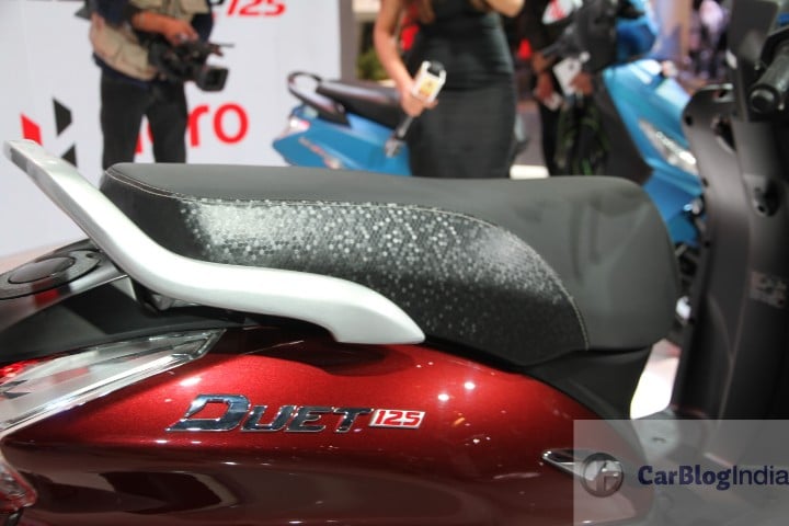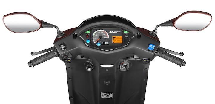 There are dual tone ascents all around the scooter with body coloured rear view mirrors adding to the visual appeal of the Duet 125 CC.