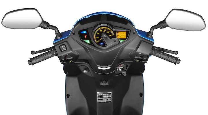The instrument cluster is a digital+analogue combination. The meter also has a side stand indicator and service reminder.