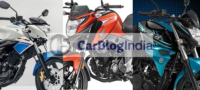 Honda CB Hornet 160R vs Suzuki Gixxer vs Yamaha FZ-S Price Comparison