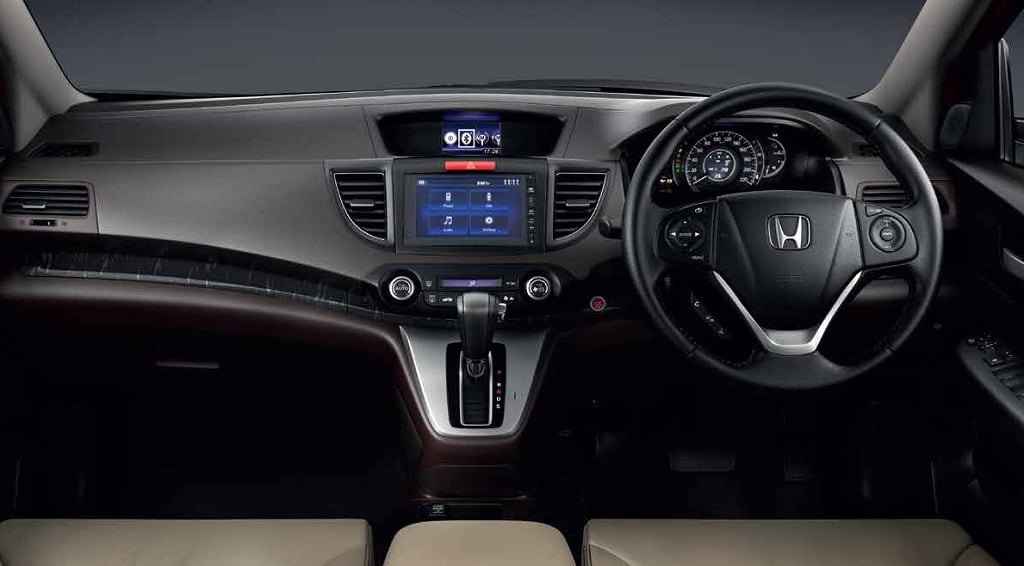 The cabin of the Tucson isn’t as eye-catching as the exterior. That said, the dashboard looks classy with a neat layout. The simple design is a reflection of Hyundai’s current design philosophy. The India-spec Tucson could feature a black-beige colour combination, leather wrapped steering, leather seats, etc. The CR-V’s dashboard comes finished in dark materials. Its design is very simple, but looks fairly modern. Top-end variant gets a touchscreen infotainment system.