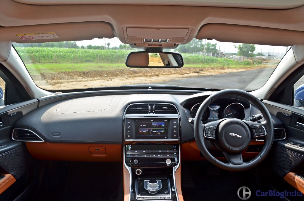 Surprising as it may seem, Jaguar does not offer the XE with a Diesel engine yet. What you get is a 2.0 L Turbocharged petrol engine in two states of tune – 197 BHP and 237 BHP. The latter is reserved for the top end trim, which happens to be the one we sampled. Sadly, most of our time with the XE was spent within the confines of the city and on traffic-infested streets. However, the shorts stints on the expressway were enough to make us realize that this motor plays a vital role in forming the character of this car. 237 BHP-340 Nm propel the XE from a standstill to 100 KMPH in just 6.8 seconds. While it can cruise around leisurely all day long, it will drop a few gears to dart forward at the drop of a hat. Speaking of dropping gears, transmission duties are handled by a ZF-sourced 8-speed Auto ‘box that sends power to the correct set of wheels; yes, this one’s a RWD. For the most part, the shifts are smooth and quick, but there were a couple of instances where the gearbox reacted a bit over-enthusiastically. So you just have to be ready in case it drops an extra cog and charges ahead wildly. However, this is something that can be addressed rather easily by paddle shifters. In a market flooded with Diesel-powered vehicles, the Jaguar XE serves as a brilliant reminder of the sporty characteristics that high-performance Petrol engines possess.
