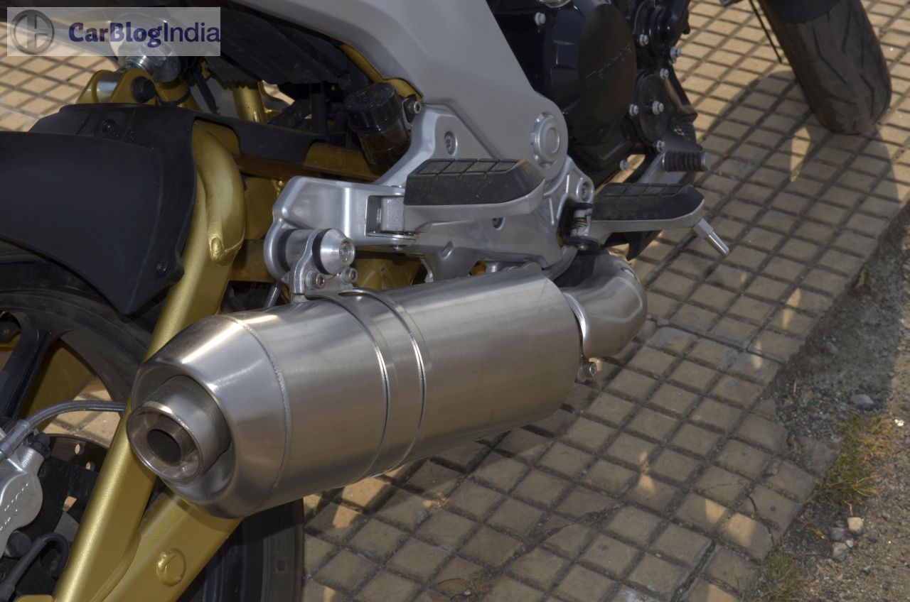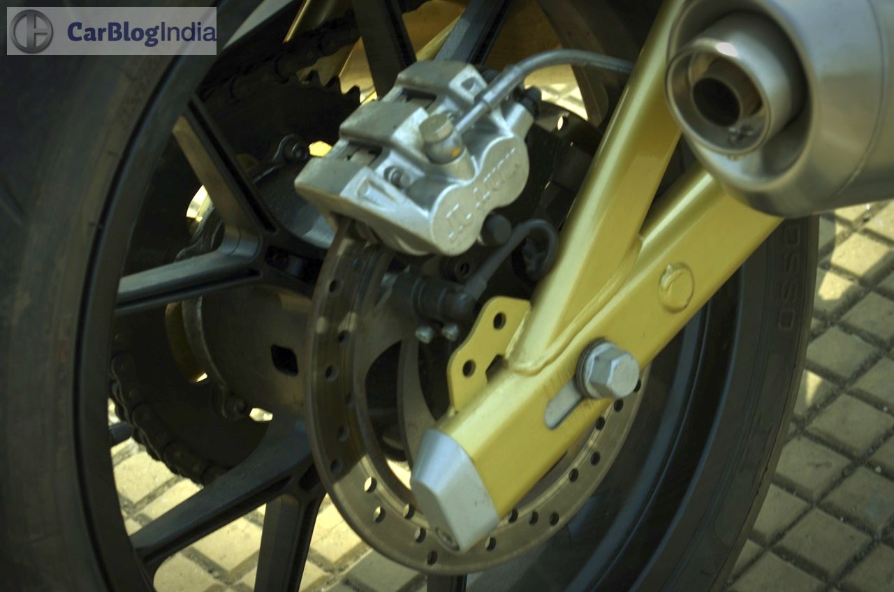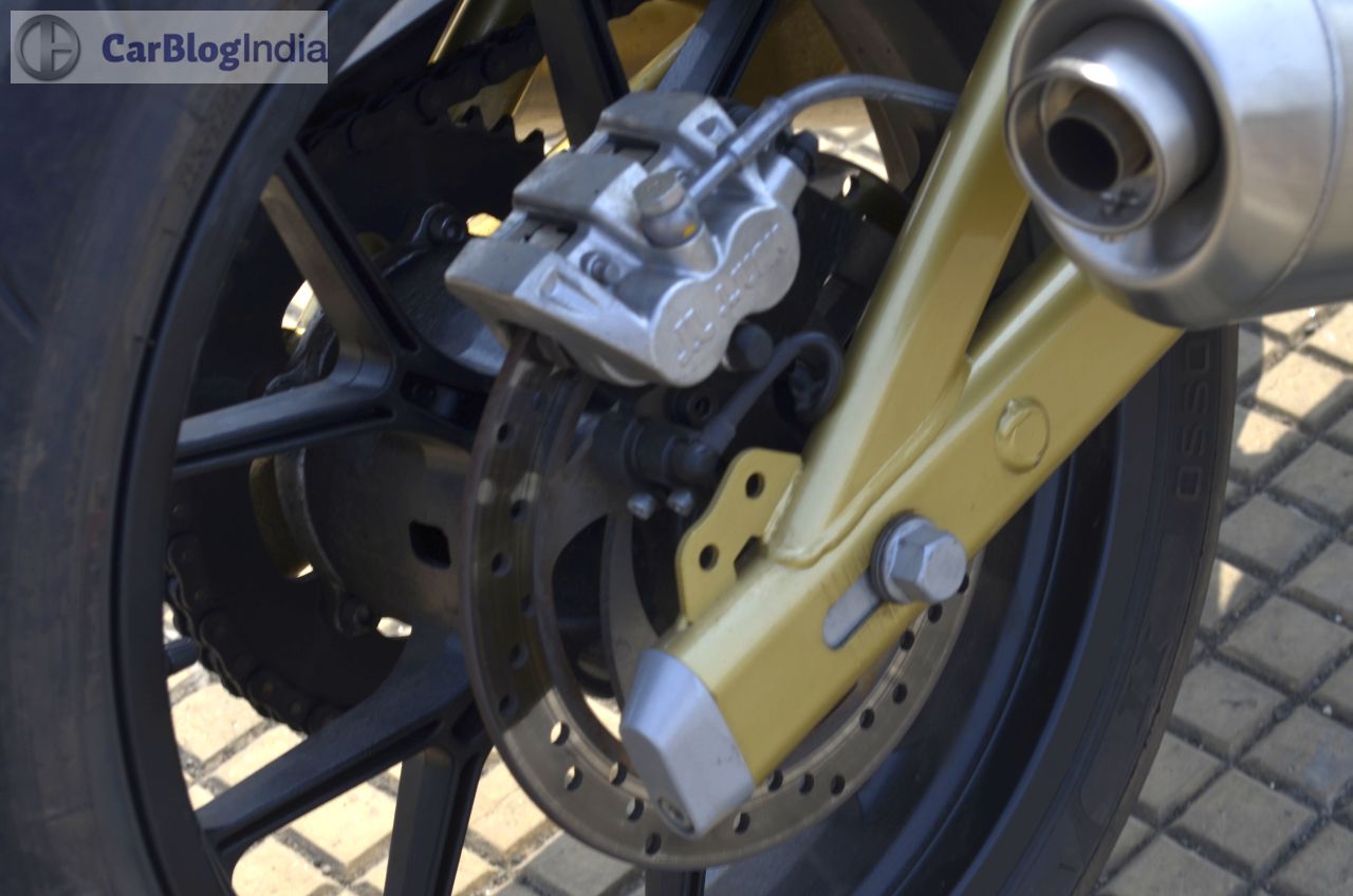 The Mojo boasts of a set of Upside Down (USD) telescopic forks up front and an adjustable monoshock at the rear. The ride quality is nothing short of exemplary, as the Mojo can presumably deal with the nastiest of the craters, without as much as breaking a sweat. The bike simply glides over broken patches of road and the rider, who sits on a well-bolstered seat, will nary complain of any sort of discomfort while riding on the bad roads. Another area where the Mojo excels is the high speed stability. The long wheelbase, along with that high kerb weight, ensures that this bike stays planted even at the high speeds. The flipside? The Mojo isn’t anywhere as sharp cutting through the city traffic as the Duke twins, but then, you do get an excellent mile-muncher for your highway trips.