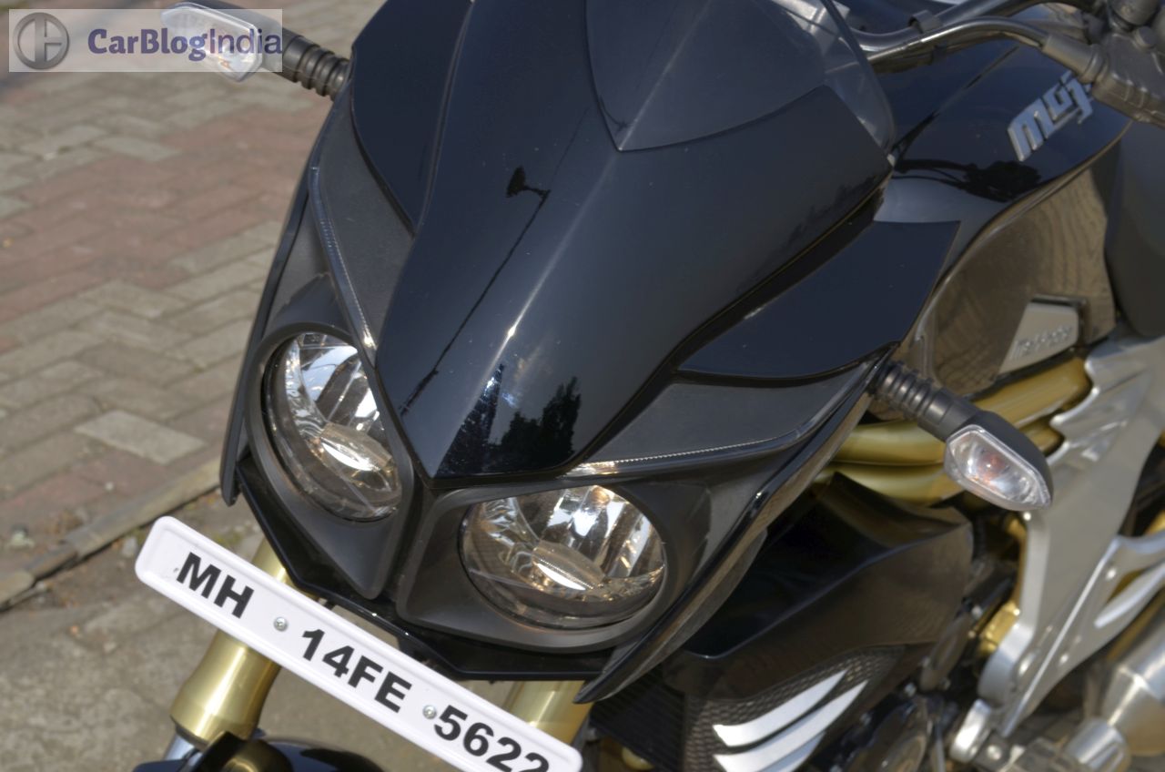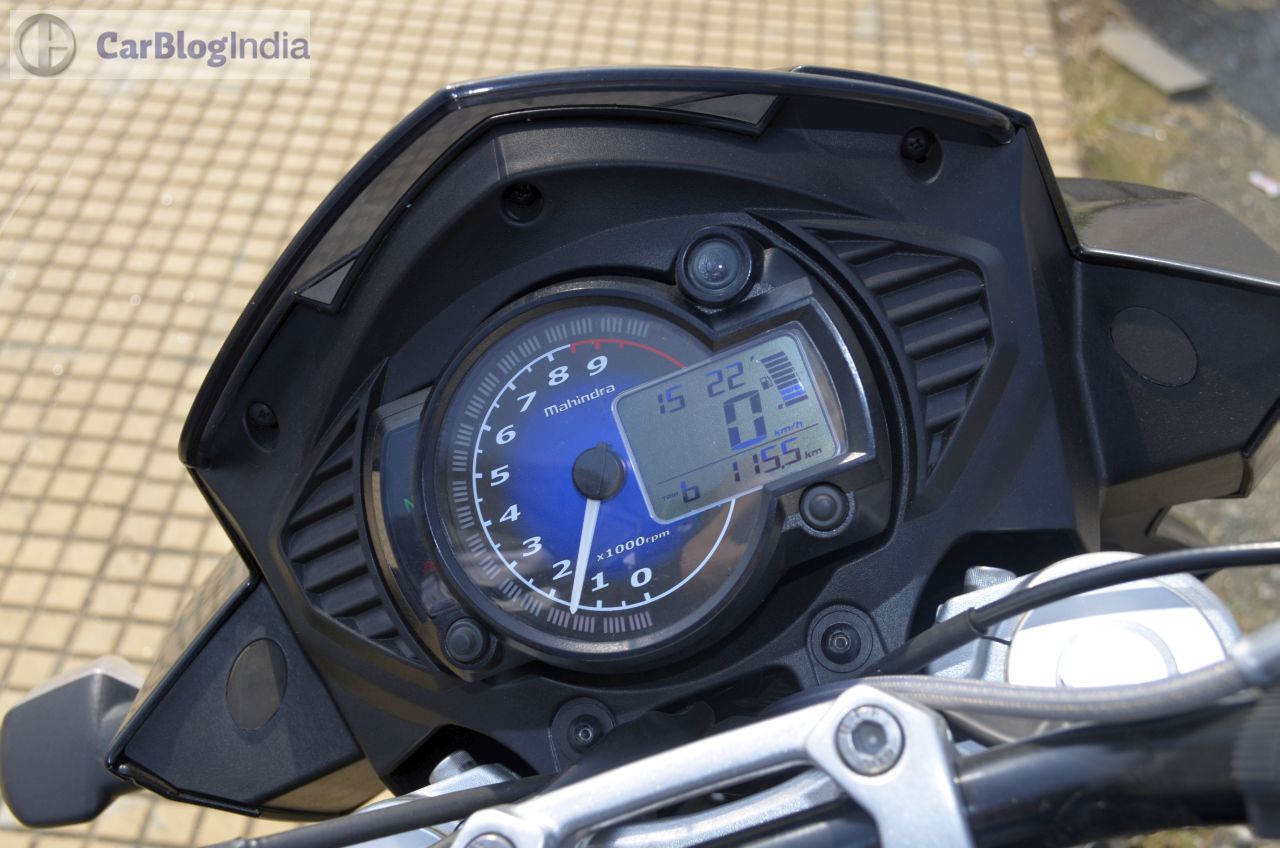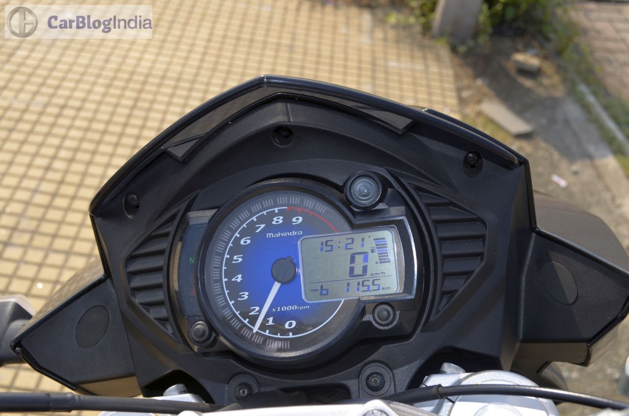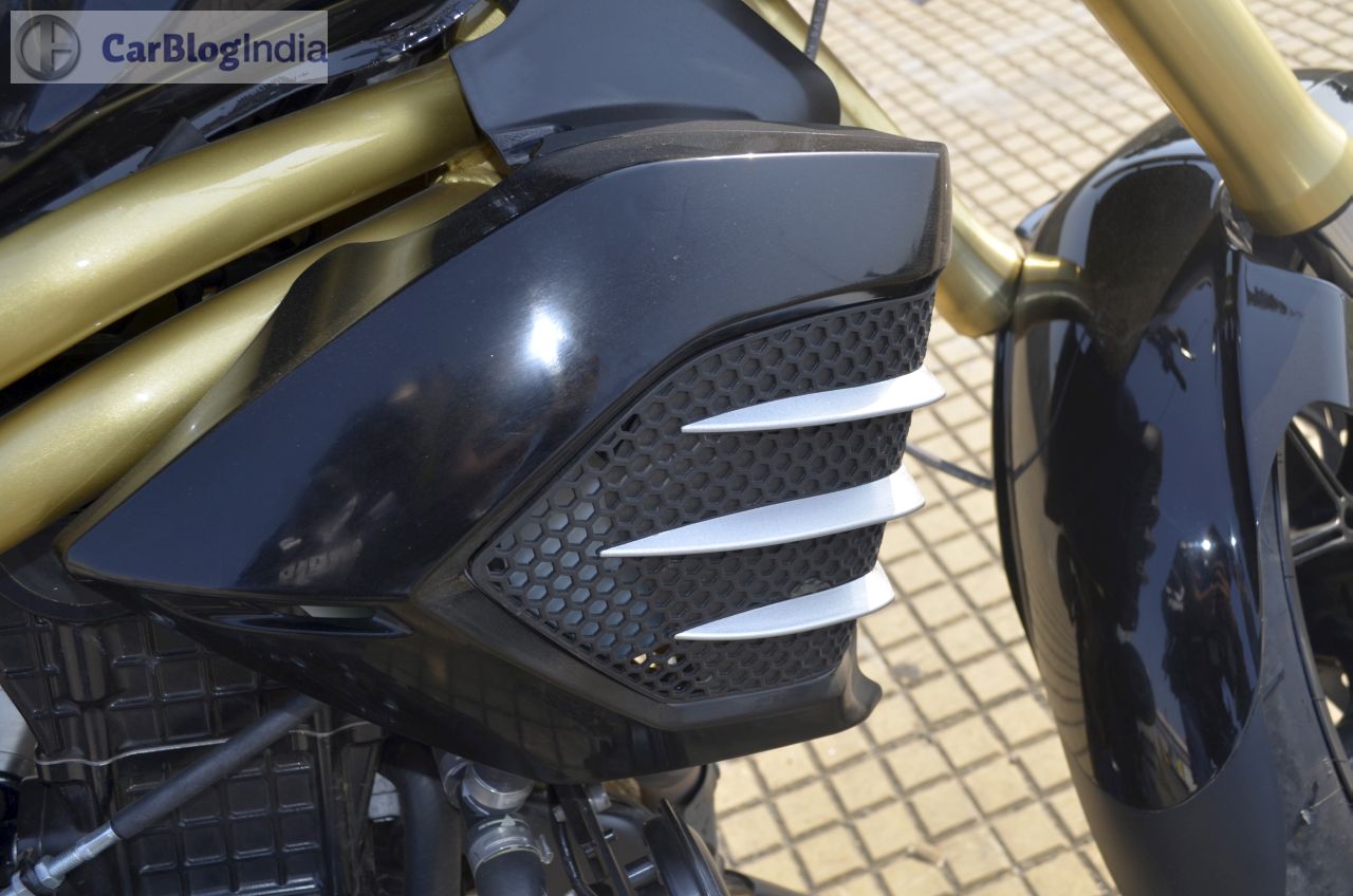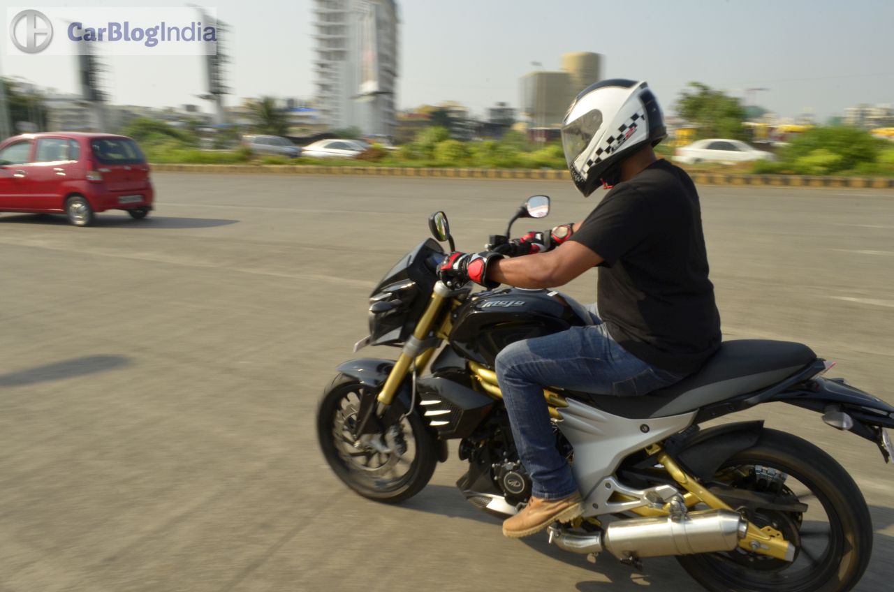 Among the highlights of the Mojo’s design is a bug-eyed twin-headlamp setup that is flanked by a black-colored cowl. The front fascia also gets daytime running lights placed just above the headlamps. Rounding of the beefy look at the front are USD (Up Side Down) forks and a rather fat front tire. Highlights of the side profile are golden-colored bars that run under the fuel tank and a partially exposed swingarm that is also painted in golden. The rear-end gets LED-taillamp and the twin end-cans, along with the 150-section tire, complete the ‘big bike’ look. On the saddle, you are greeted by a sporty-looking speedo console that is flanked by an analogue tacho and a digital speedo display. The speedo unit also shows information like – top speed recorded, 0-100 km/h timing, 0-400 m timing, etc. The Mojo might not be the prettiest set of wheels around, but its overall design does draw a plenty of glances from other road-users.