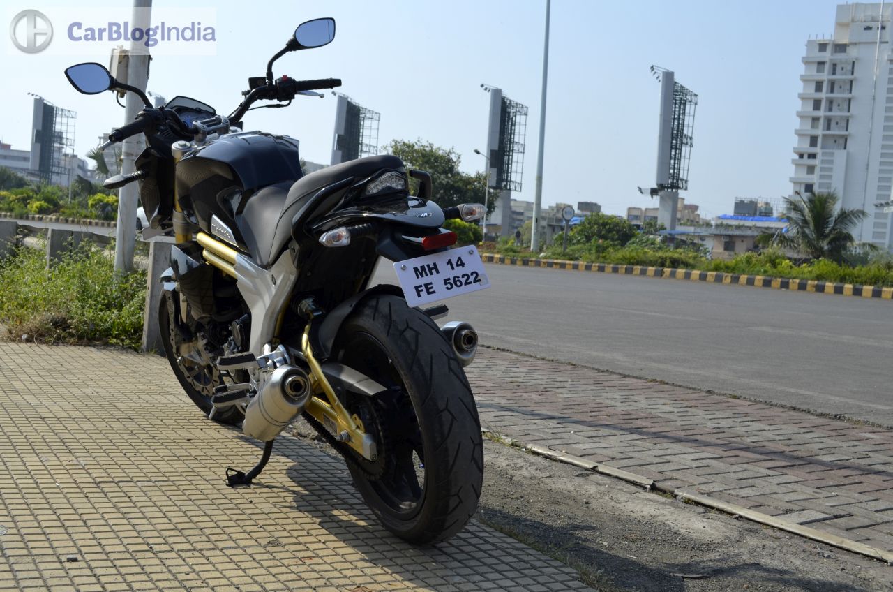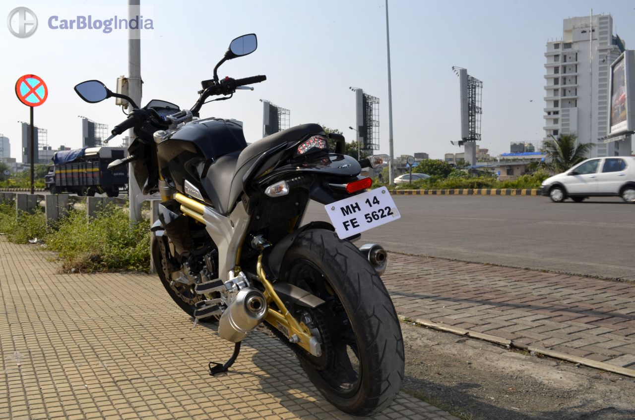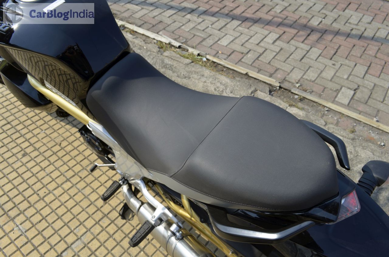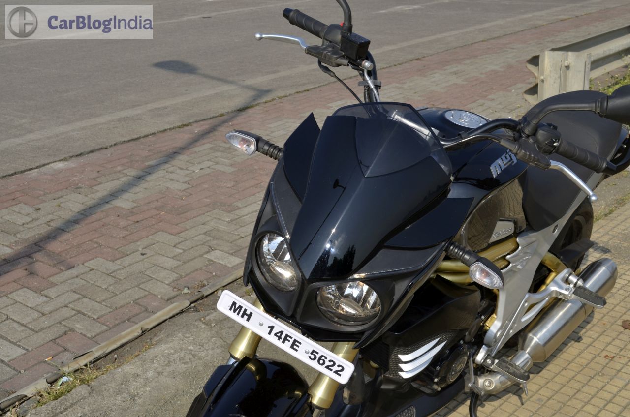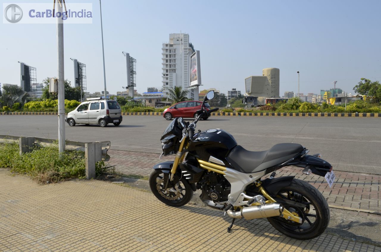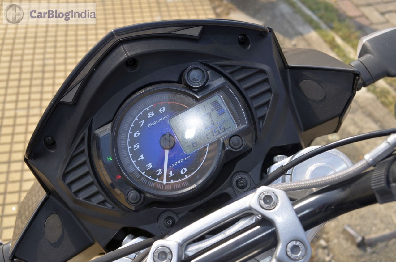 Among the highlights of the Mojo’s design is a bug-eyed twin-headlamp setup that is flanked by a black-colored cowl. The front fascia also gets daytime running lights placed just above the headlamps. Rounding of the beefy look at the front are USD (Up Side Down) forks and a rather fat front tire. Highlights of the side profile are golden-colored bars that run under the fuel tank and a partially exposed swingarm that is also painted in golden. The rear-end gets LED-taillamp and the twin end-cans, along with the 150-section tire, complete the ‘big bike’ look. On the saddle, you are greeted by a sporty-looking speedo console that is flanked by an analogue tacho and a digital speedo display. The speedo unit also shows information like – top speed recorded, 0-100 km/h timing, 0-400 m timing, etc. The Mojo might not be the prettiest set of wheels around, but its overall design does draw a plenty of glances from other road-users.