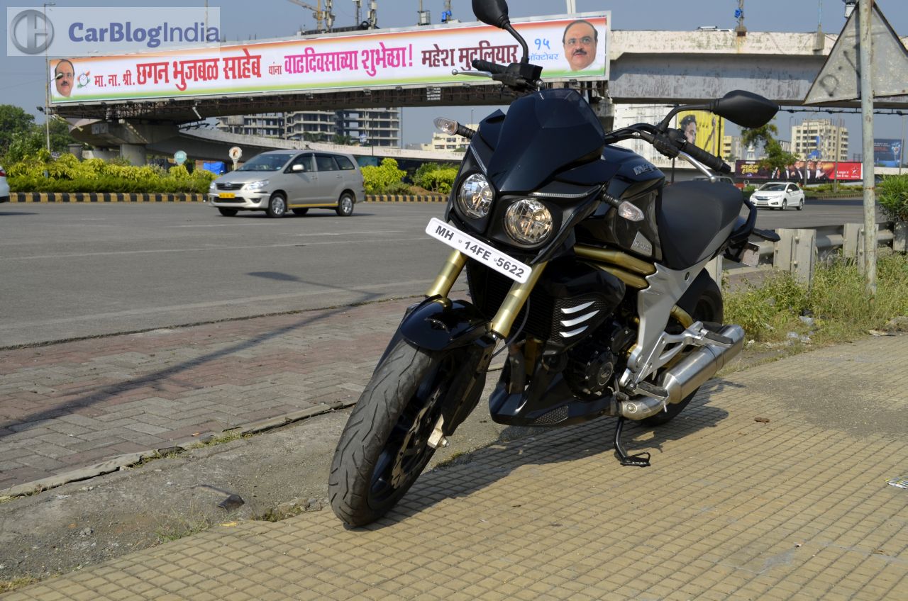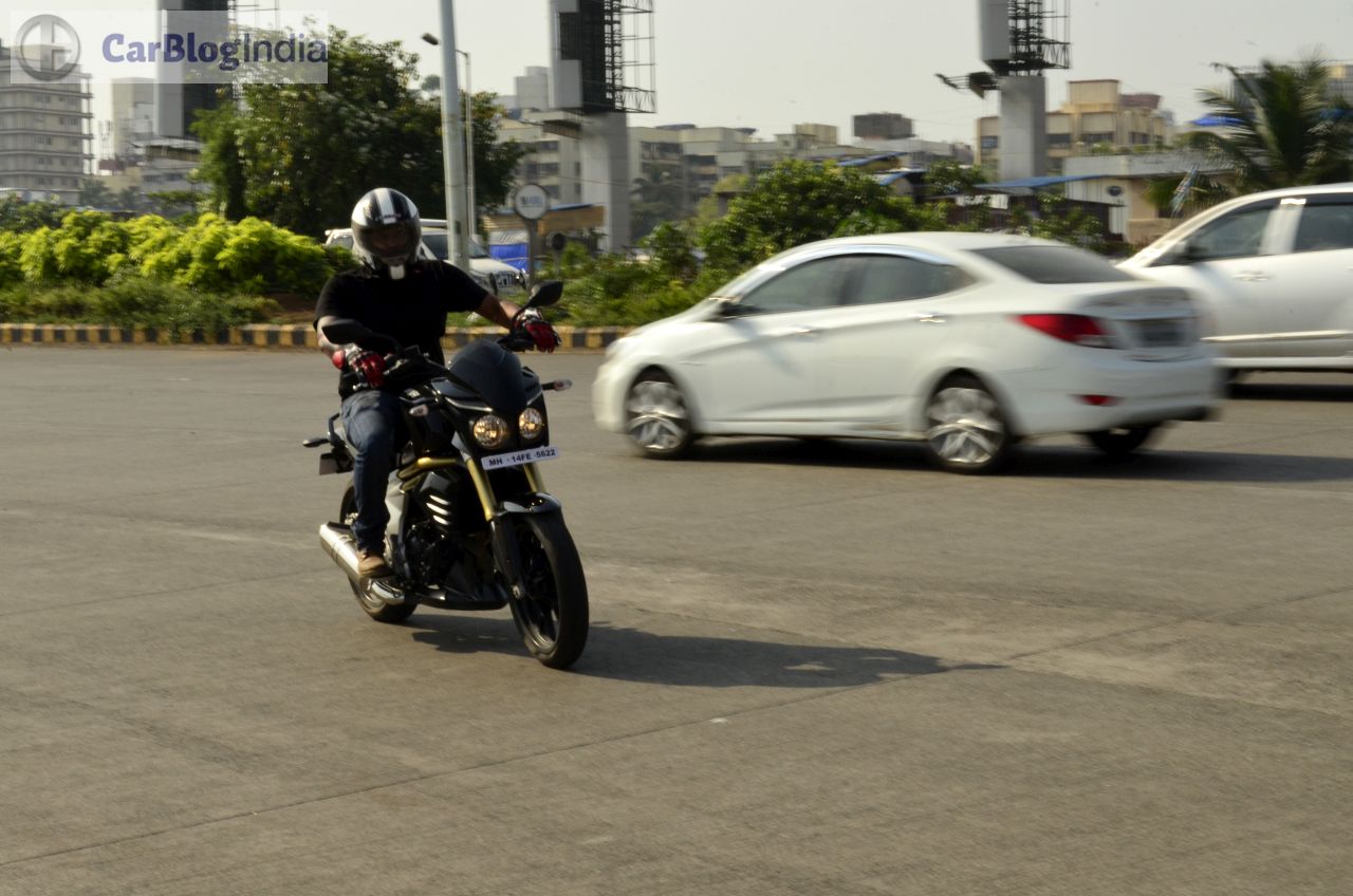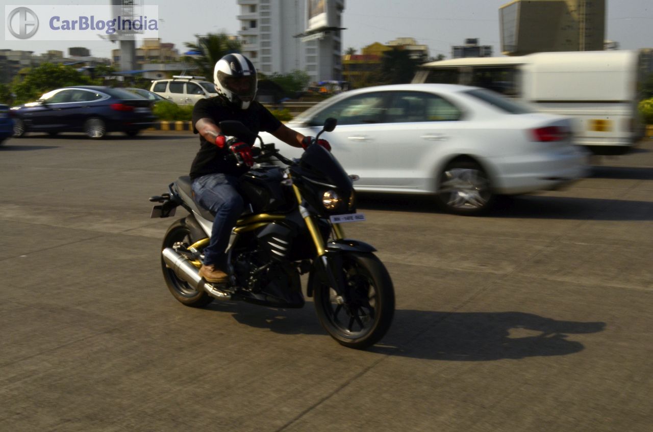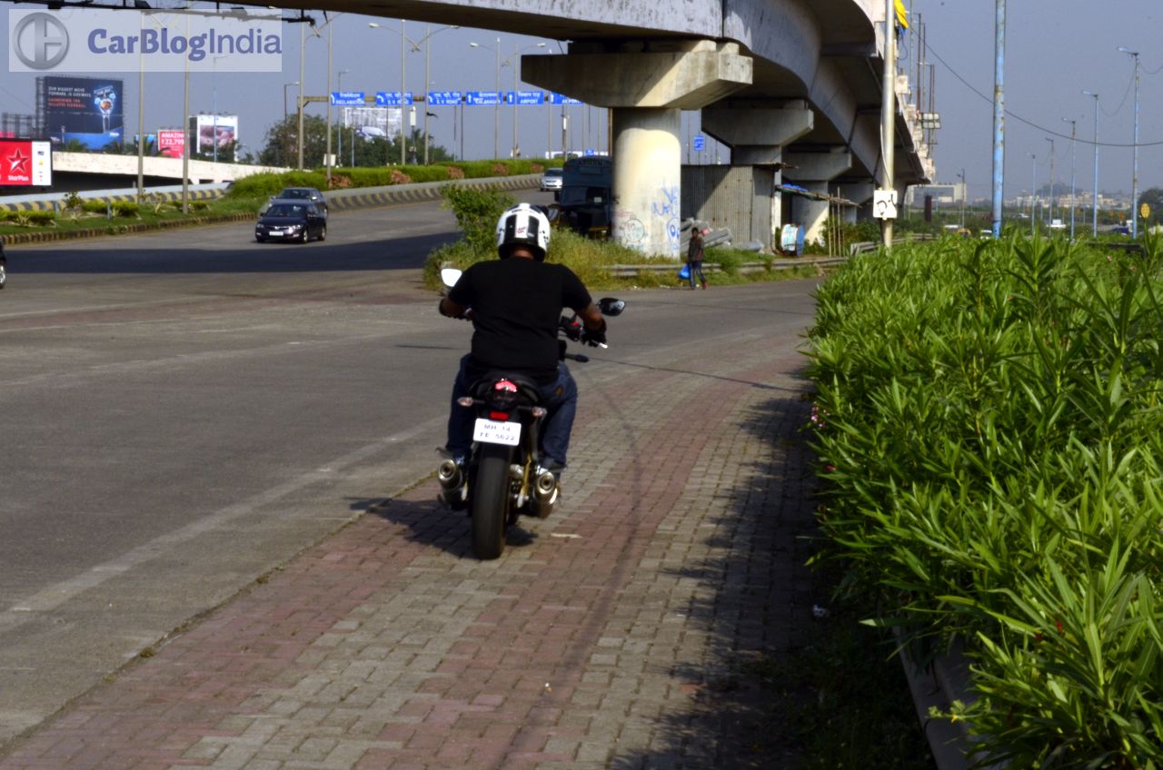 The Mahindra Mojo gets a 320 mm petal disc-brake at front and a 240 mm conventional disc-brake setup at the rear. There’s ample bite on offer and the brakes are sufficiently potent to safely haul down this motorcycle from really high speeds. The Mojo sheds speed rather confidently and further enhancing the braking efficiency are its sticky tires. ABS is currently unavailable but expect Mahindra to roll out the Mahindra Mojo 300 ABS model around February next year.