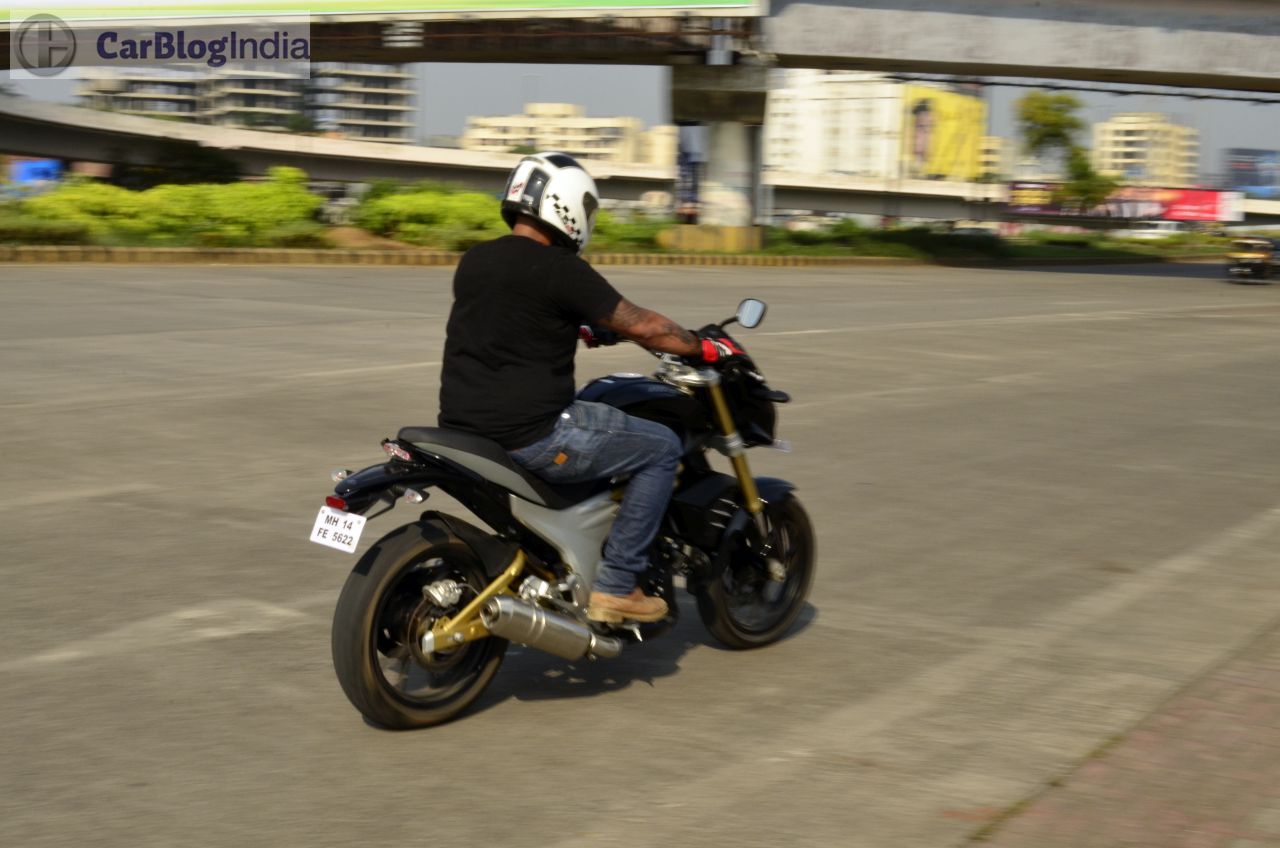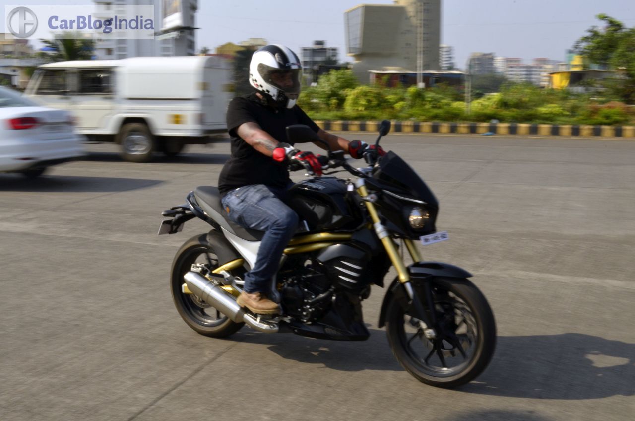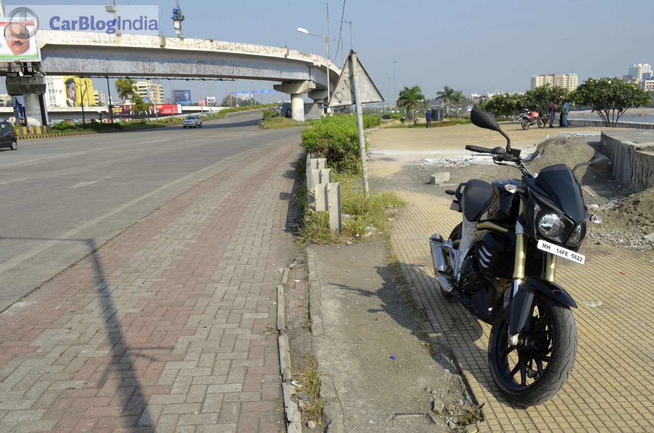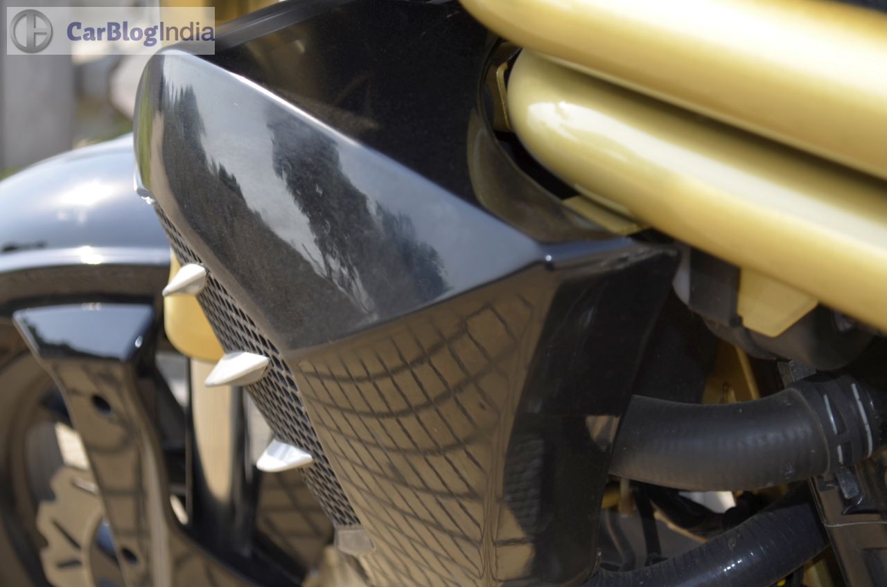 The Mahindra Mojo gets a 320 mm petal disc-brake at front and a 240 mm conventional disc-brake setup at the rear. There’s ample bite on offer and the brakes are sufficiently potent to safely haul down this motorcycle from really high speeds. The Mojo sheds speed rather confidently and further enhancing the braking efficiency are its sticky tires. ABS is currently unavailable but expect Mahindra to roll out the Mahindra Mojo 300 ABS model around February next year.