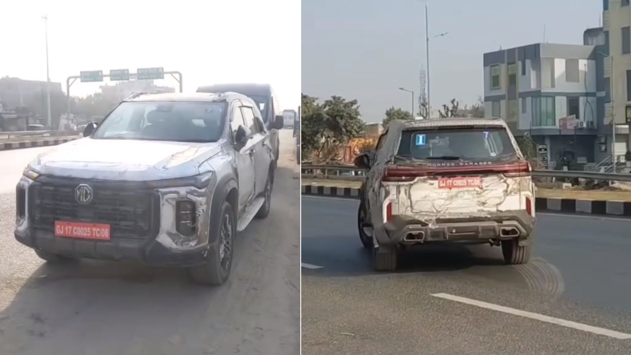 We are able to come across the specifics of this video courtesy of motoyatra on Instagram. The visuals capture a vivid clip of the new MG Majestor plying on the busy Indian roads without any camouflage. Someone driving behind the SUV made the entire video. We are able to witness the tail end of the SUV. It incorporates a connected LED taillight along with a rugged bumper with a solid skid plate and a dual-exhaust system. It has the Majestor lettering on the bootlid. In the latter part of the video, the cameraman also records it while it was parked, where the front and side sections were visible. We see elegant alloy wheels, sleek and sharp LED headlamps and sturdy side steps.