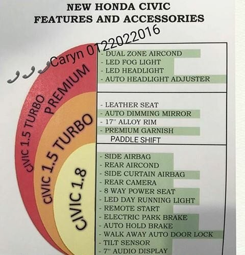 In Malaysia, the Civic goes on sale in three variants- Civic 1.8, Civic 1.5 Turbo and Civic 1.5 Turbo Premium. Here’s the variant-wise features list-