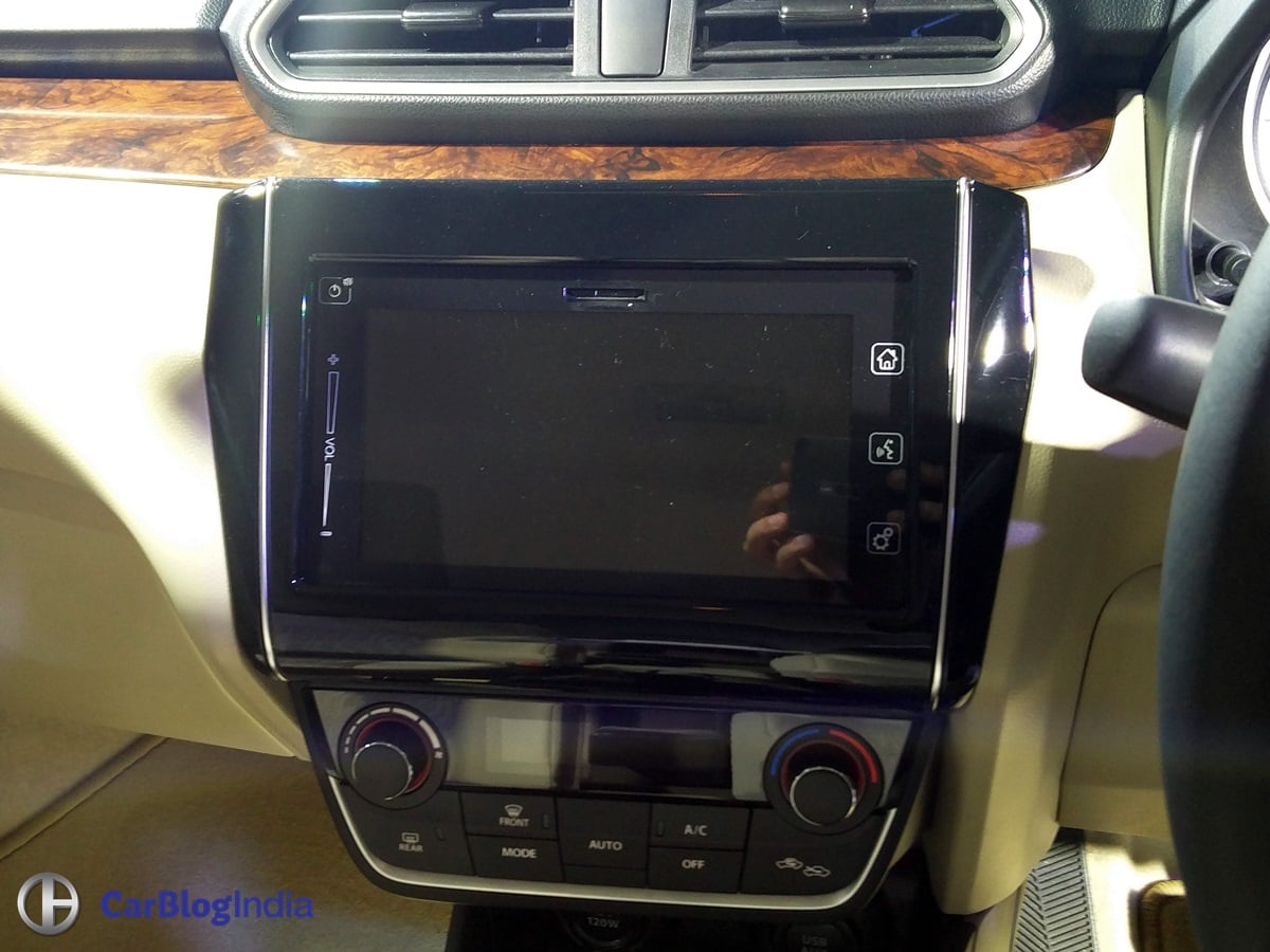 Thanks to a longer wheelbase and wider track, the new Dzire’s interior is a lot more spacious now. This will be helpful while having 5 occupants over long journeys. Also, the new look Dzire’s interior gets many more features. The highlight here is the touchscreen AVN unit that supports Android Auto, Apple Car Play and Mirror Link.