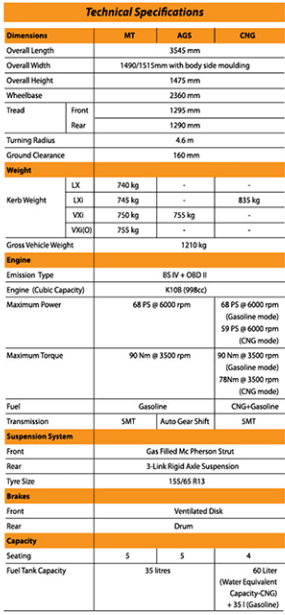 | Gearbox | 5 speed MT, Auto Gear Shift | 5 speed MT |