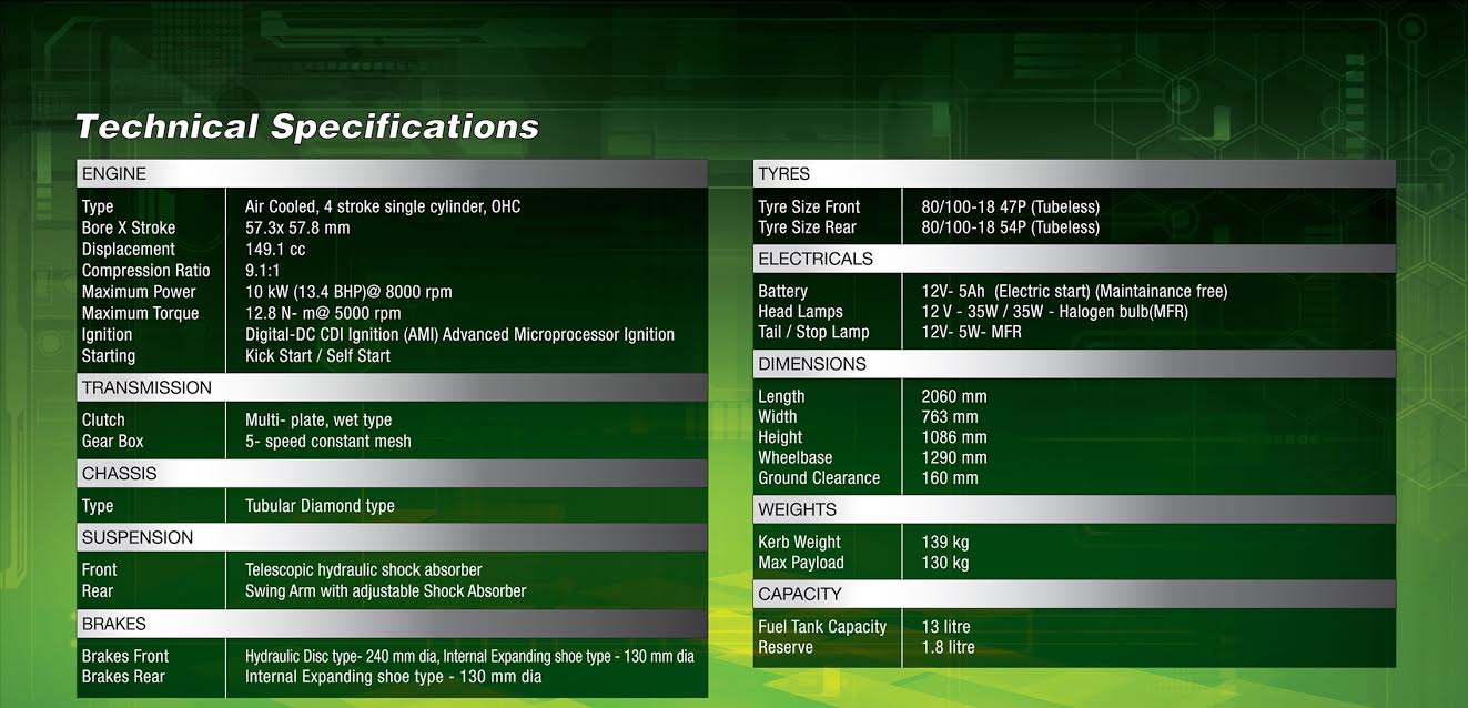 The new model Achiever 150 comes with a 149 cc engine. This single cylinder unit puts out a maximum power of 13.4 BHP at 8000 rpm. Peak torque comes in at 12.8 Nm at 500 rpm. This engine is mated to 5-speed gearbox. The highlight of the specifications of the new model Hero Achiever 2016 is the i3S start/stop technology. This system cuts off power when the bike comes to a complete halt and is in neutral. The i3S tech should help boost fuel economy.