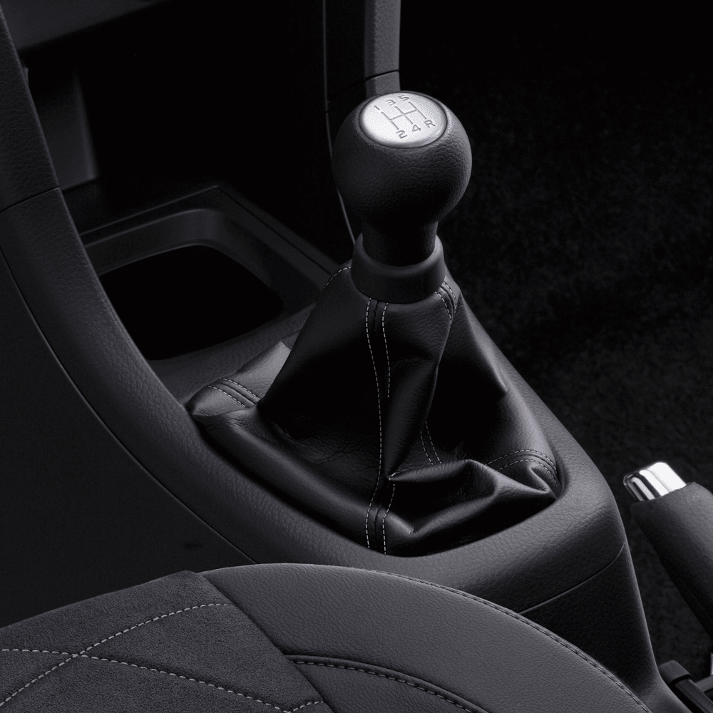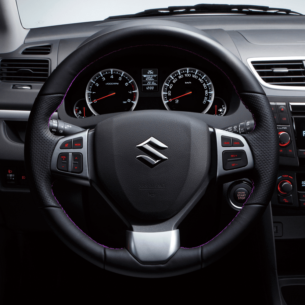 - Leather finished steering and gear knob with violet stiching