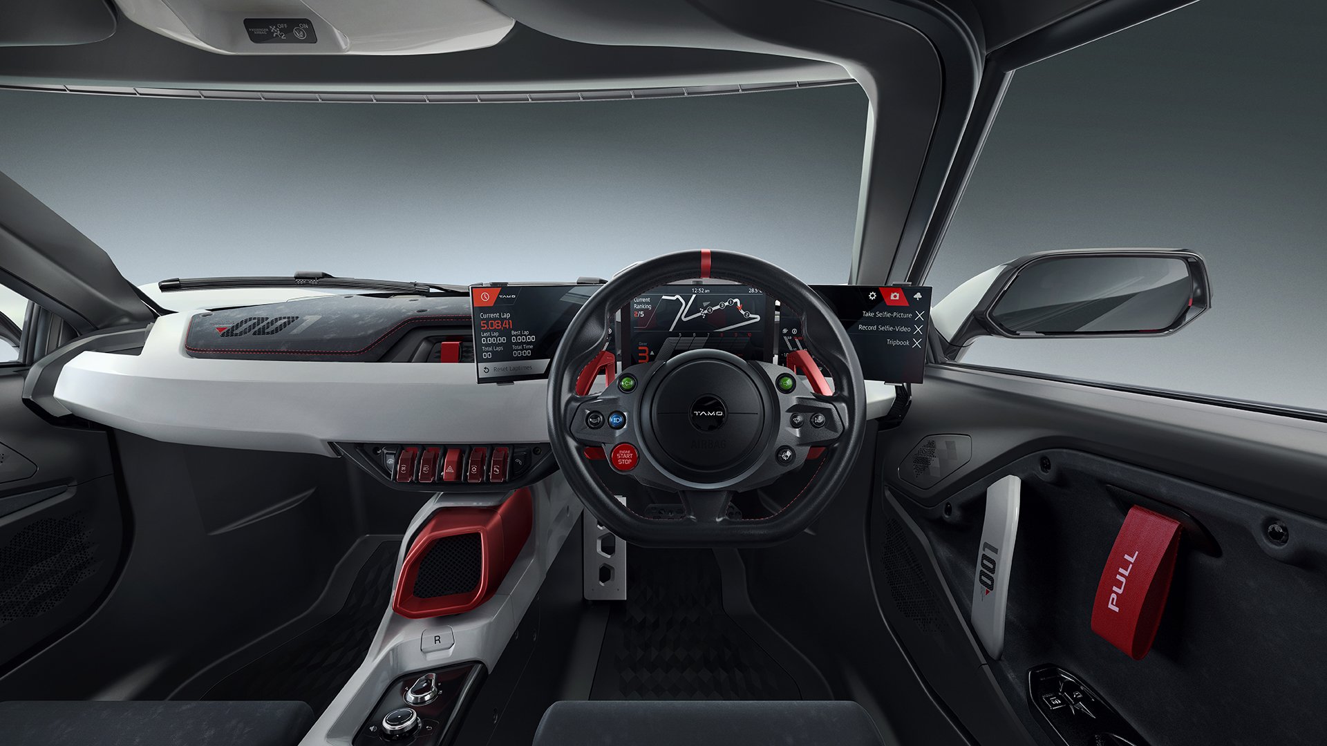 The interior of the Tata Tamo Racemo offers clean and futuristic-looking surfaces. We like the multi-tone Gray-White-Red colour theme and the minimalistic approach from Tata’s design team.