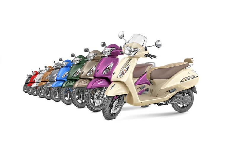 Theย TVS Jupiterย is available in as many as 8 colours.
