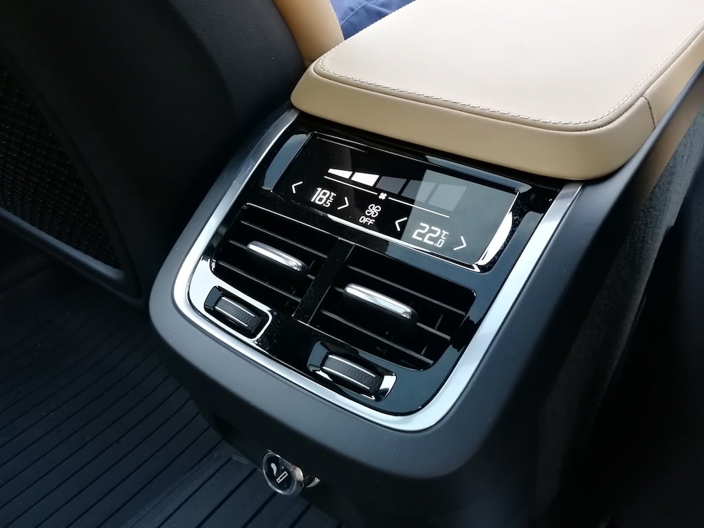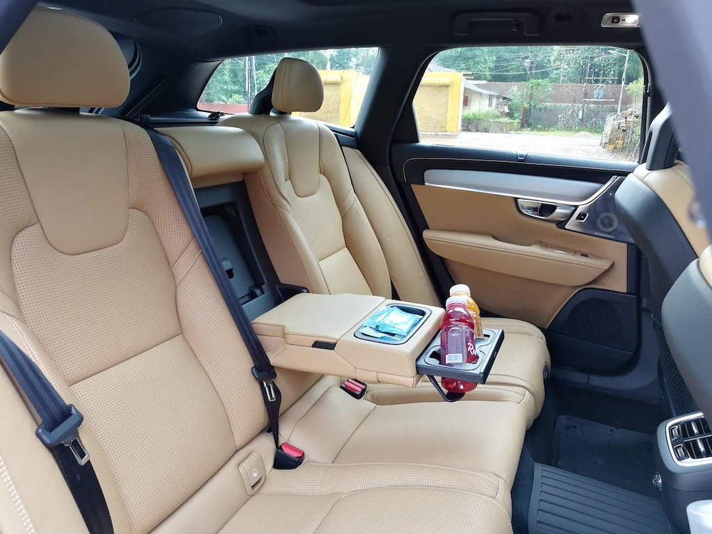 The car is loaded with loads of creature comforts like rear AC vents with individual climate control settings for all 4 zones (2 zones at the front, 2 at t rear). The seats use Nappa leather in tan colour which looks very classy. There is a lot of room inside the car for 4 adults. The rear seat has a foldableย armrest which can be folded to make space for a 3rd passenger at the rear if needed. In short, the car is loaded to the gills with features.