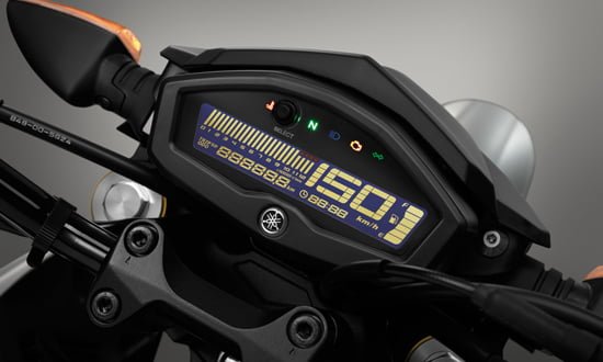 The design of the M-Slaz has been inspired by other bikes from Yamaha’s MT range of streetfighter motorcycles. An aggressive stance, sharp lines and striking details round off the exteriors of the MT-15.